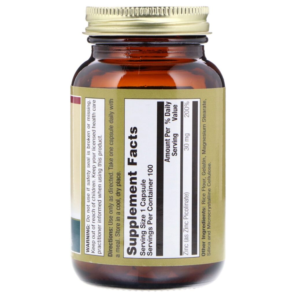 | Zinc (as Zinc Picolinate) | 30 mg | 200% |
