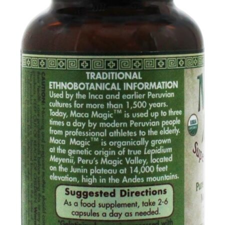 Maca Magic Orgânica Maca Magic é cultivada organicamente na origem genética do verdadeiro Lepidium peruvianum, no Vale do Peru, localizado no planalto de Junin, a 14,000 pés de elevação , no alto da Cordilheira dos Andes. Usado pelo Inca e culturas peruanas anteriores por mais de 1,500 anos. Hoje, Maca Magic é usado até três vezes por dia pelos peruanos modernos, de atletas profissionais a idosos. Sinta o poder do Inca!