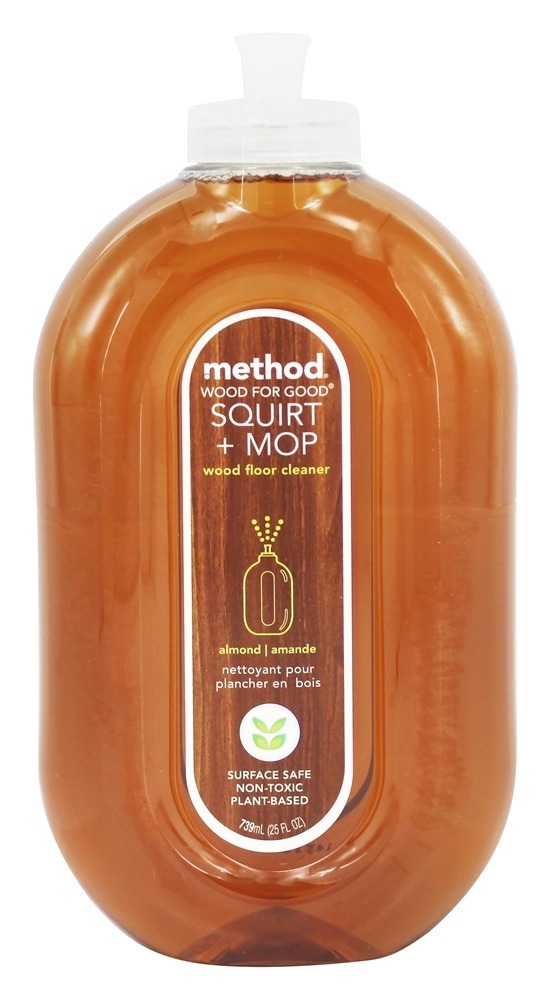 Método Limpador de Chão Duro Squirt + Mop A amêndoa é um produto sem cera, sem tolices, tudo de bom! As pessoas costumavam reservar a limpeza do chão para ocasiões especiais como a noite do limbo ou a visita da rainha. Mas este limpador não-tóxico e biodegradável de piso de madeira não-cera transforma uma tarefa em um prazer com aroma de amêndoa. basta esguichar, esfregar e aquecer no brilho de um reluzente limpo. Formulado para pisos de madeira e laminados selados.