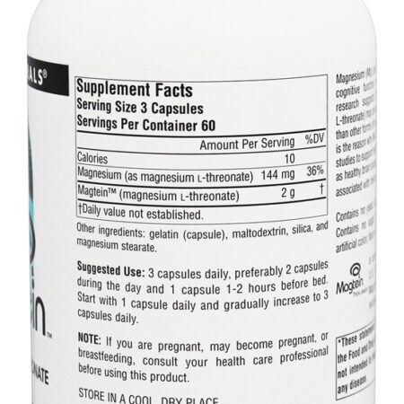 Source Naturals Magtein (Magnésio L-Treonato) 667 mg. pode fornecer mais magnésio ao cérebro do que outras formas de magnésio. É teorizado que esta é a razão pela qual Magtein foi mostrado em estudos pré-clínicos para apoiar a memória saudável e aprendizagem, bem como densidade de sinapse cerebral saudável em regiões do cérebro associadas à memória. O magnésio, como o que está contido na Magtein, desempenha um papel essencial no apoio à função cognitiva e à saúde do cérebro.