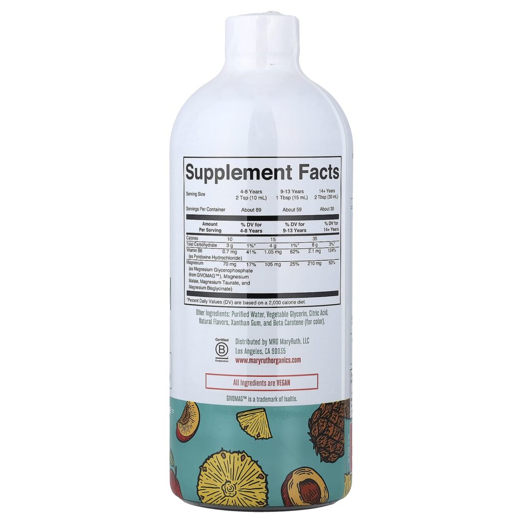 MaryRuths Mistura Líquida de Magnésio Abacaxi e Nectarina 887 ml (30 fl oz) – MaryRuth’s Suplementos Minerais Magnésio Malato de Magnésio.