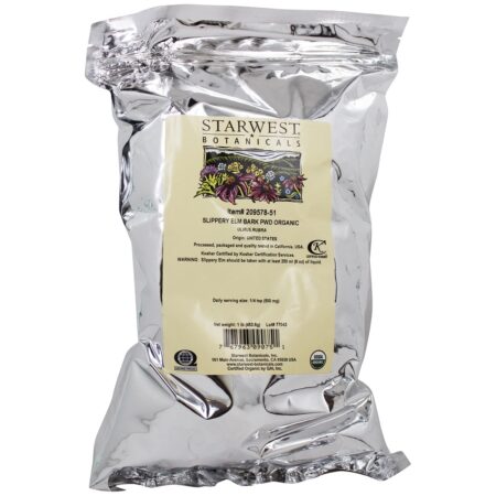Starwest Botanicals – Casca de olmo escorregadio em pó orgânico – 1 Libra