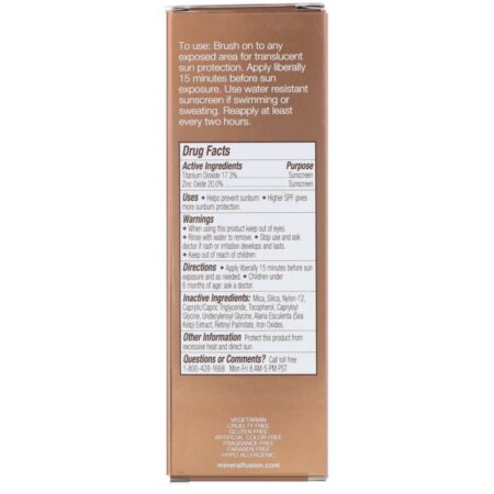 Brush on to any exposed area for translucent sun protection. Apply liberally 15 minutes before sun exposure. Use water resistant sunscreen if swimming or sweating. Reapply at least every two hours.
