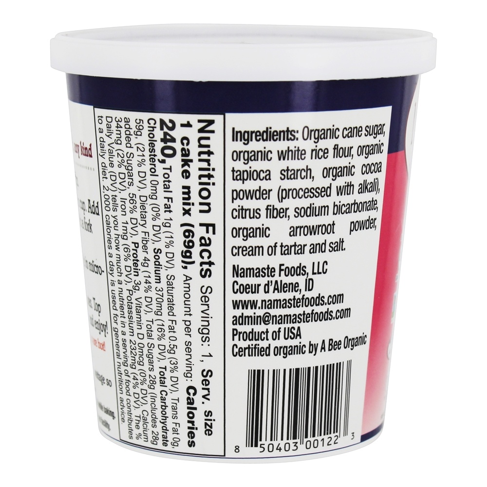 Namaste Foods Organic Cake Cup Mistura de Chocolate Negro é um deleite quente, que você pode top com o que quiser ou simplesmente desfrutar da taça! E a melhor parte? Namaste Cake Cups são certificadas pelo USDA Organic e livre de glúten e os principais 8 alérgenos para que todos possam participar da festa !.