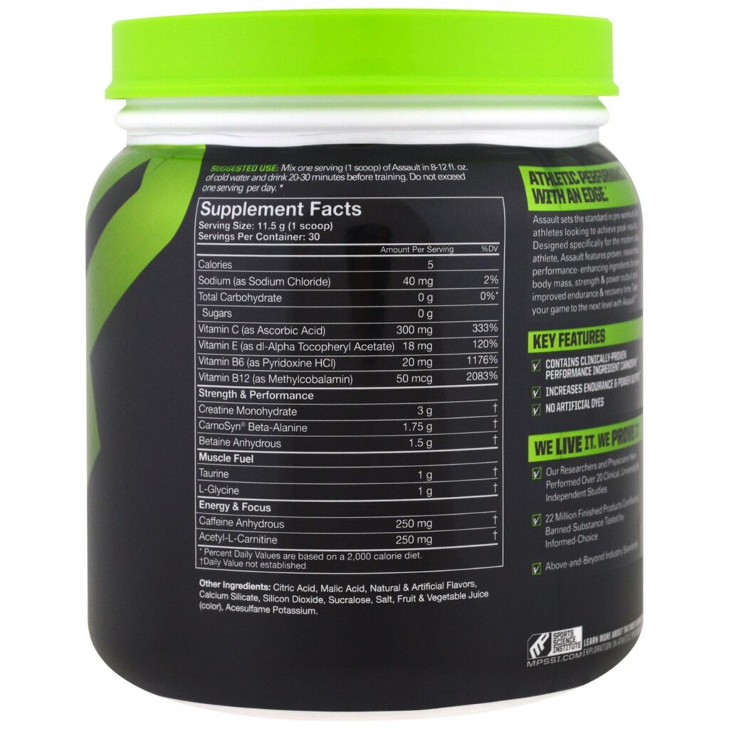 Assault define o padrão nos pré-treinos para atletas que buscam alcançar os melhores resultados. Projetado especificamente para o atleta moderno, o Assault apresenta ingredientes comprovados, e aprimorados para aumentar a massa corporal magra, a força e a potência, além de melhorar a resistência e o tempo de recuperação. Eleve seu jogo ao próximo patamar com Assault!