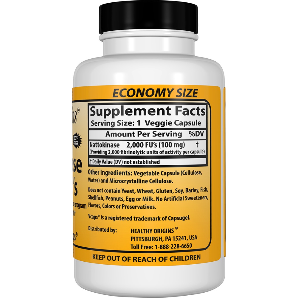 Nattokinase natural 2,000 FU 100 mg. – Cápsulas vegetarianas 180 Healthy Origins