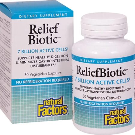 Promova o bem-estar digestivo e fortaleça sua imunidade com Natural Factors ReliefBiotic™, um suplemento alimentar de alta qualidade contendo 7 bilhões de células probióticas ativas em 30 cápsulas vegetarianas. Desenvolvido com uma mistura sinérgica de cepas cientificamente selecionadas, ReliefBiotic™ oferece um suporte eficaz para o seu sistema gastrointestinal, auxiliando na digestão, na absorção de nutrientes e na manutenção de um equilíbrio saudável da flora intestinal. Ideal para quem busca uma solução natural e confiável para melhorar a qualidade de vida e o bem-estar geral.