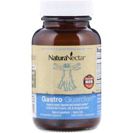 NaturaNectar Gastro Guardian não contém álcool, açúcar, amido, trigo, glúten, fermento, leite (lactose), ovo, marisco, conservantes artificiais, sabores, corantes ou corantes.