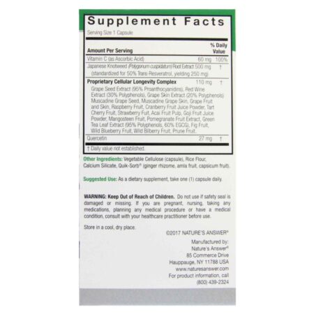 A Nature’s Answer é uma marca renomada, comprometida com a pureza e a eficácia de seus produtos. Ao escolher Nature’s Answer Resveratrol 250 mg, você opta por um suplemento fabricado com rigorosos padrões de qualidade, garantindo que cada cápsula entregue o que promete.