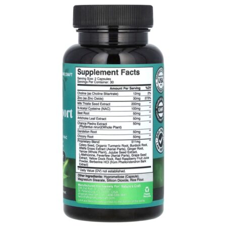 Natures Craft Suporte Hepático + NAC com Cardo-mariano 60 Cápsulas – Nature’s Craft Suplementos Saúde Intestinal Fórmulas para o fígado Antioxidantes N-Acetil Cisteína (NAC).