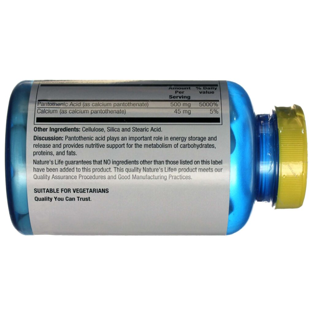 Ácido Pantotênico Nature’s Life 500mg – 250 Tabletes: Sua Dose Essencial para Energia e Bem-Estar no Brasil