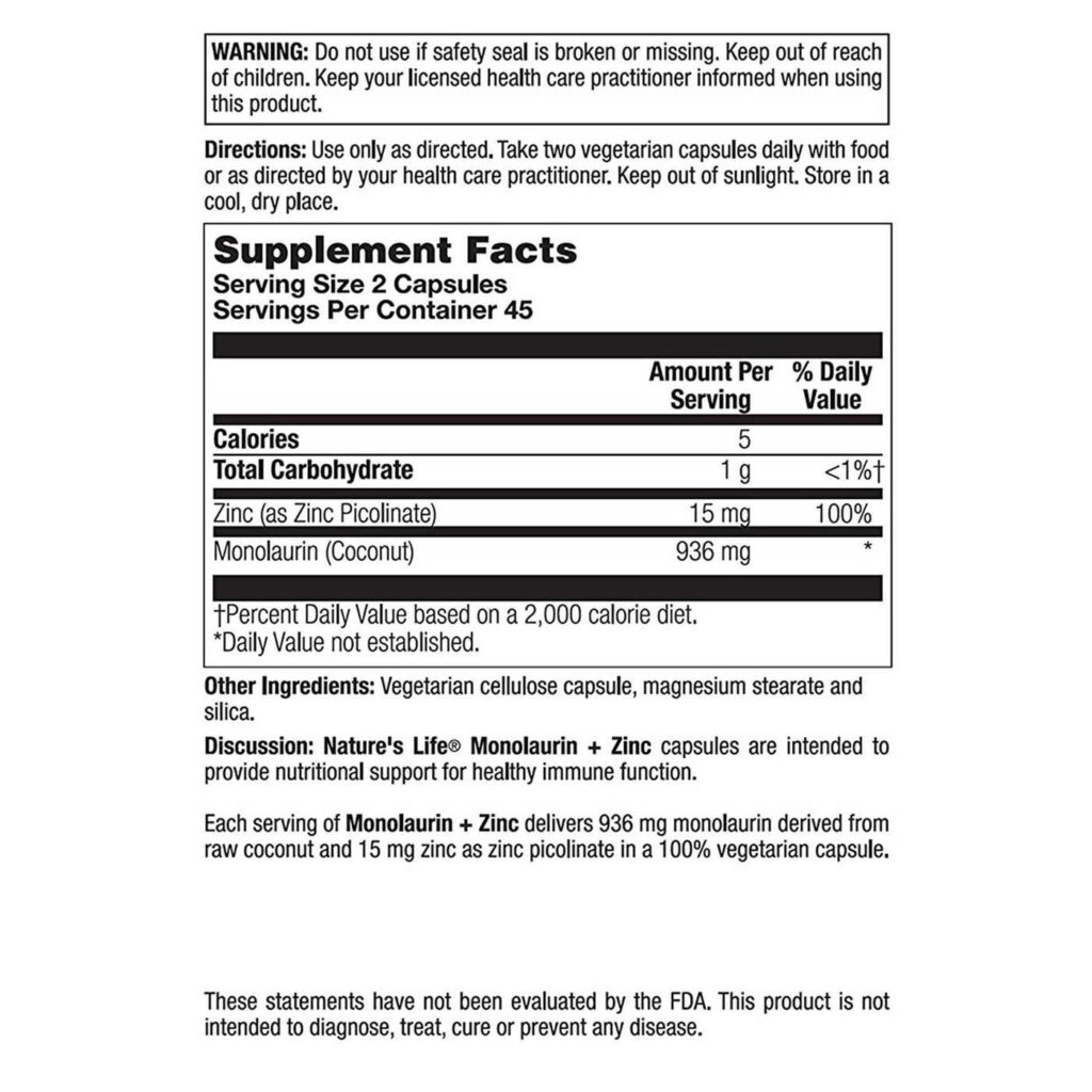 Nature’s Life Monolaurina + Zinco: Sua Aliada Essencial para Imunidade e Bem-Estar em 90 Cápsulas Vegetarianas – Imunidade Forte, Bem-Estar Diário, Cápsulas Vegetarianas, Nature’s Life, Monolaurina e Zinco