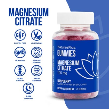 NaturesPlus Gomas de Citrato de Magnésio Framboesa 75 Gomas (35 mg por goma) – Nature’s Plus Suplementos Minerais Magnésio Citrato de Magnésio.