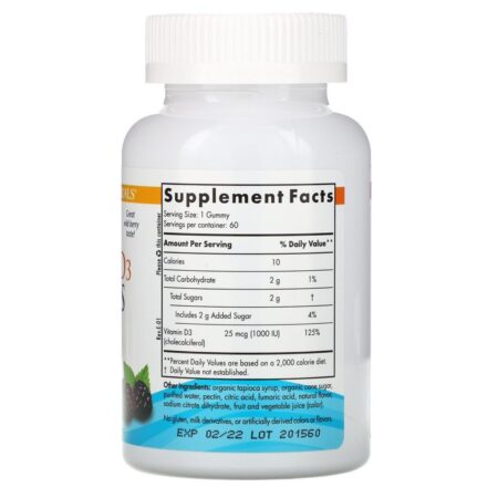 A vitamina D sempre foi conhecida pelo seu papel importante na construção de ossos fortes e ajudando a regular os níveis de cálcio e fósforo circulantes. A vitamina D3 também promove o funcionamento normal do sistema imunológico e pode promover um humor saudável. Cada goma mastigável e saborosa de vitamina D3 fornece 1000 UI de colecalciferol, a forma natural mais facilmente absorvível e utilizada de vitamina D.