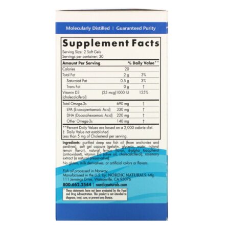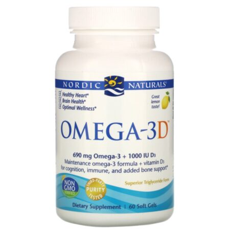 Nordic Naturals Omega-3D offers 690 mg of omega-3 plus 1000 IU vitamins D3, surpassing the expert-recommended daily dose of each of these important nutrients. Omega-3D offers combined support for healthy heart and brain function, bones, mood, and immunity.