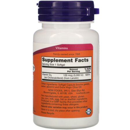 NOW® Vitamin D-3 softgels supply this key vitamin in a highly-absorbable liquid softgel form. Vitamin D is normally obtained from the diet or produced by the skin from the ultraviolet energy of the sun. However, it is not abundant in food. As more people avoid sun exposure, Vitamin D supplementation becomes even more necessary to ensure that your body receives an adequate supply.