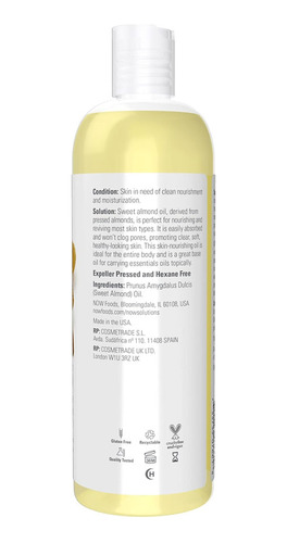 Óleo de Amendoa 473ml Now Foods Almond Oil Puro Hidratação Intensa Cuidados Massagens – Importado