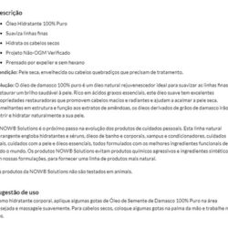 4. Facilidade na Rotina: Adicione facilmente este óleo à sua rotina diária de cuidados com a pele e cabelos, seja aplicando diretamente na pele após o banho, massageando o couro cabeludo antes de lavar os cabelos ou misturando em seus produtos de beleza favoritos, para uma hidratação profunda e restauradora.