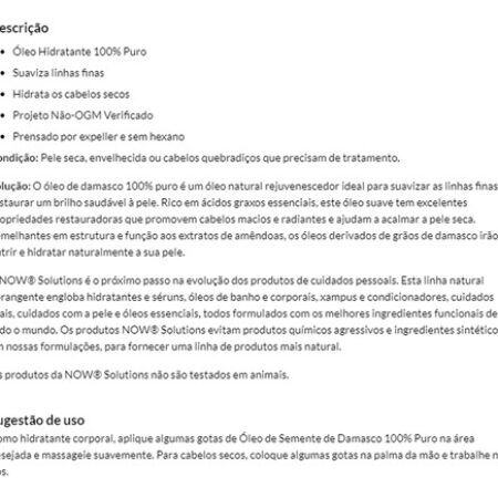 1. Principal Suporte: Descubra os benesses do Óleo de Damasco Now Foods, uma fonte natural de hidratação para uma pele e cabelos radiantes e saudáveis.