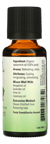 Óleo de hortelã Now Foods Orgânico 30 ml Produto Importado