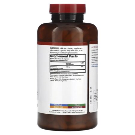 Olympian Labs Citrato de Magnésio 300 Cápsulas Vegetarianas (133 mg por Cápsula) – Olympian Labs Suplementos Minerais Magnésio Citrato de Magnésio.