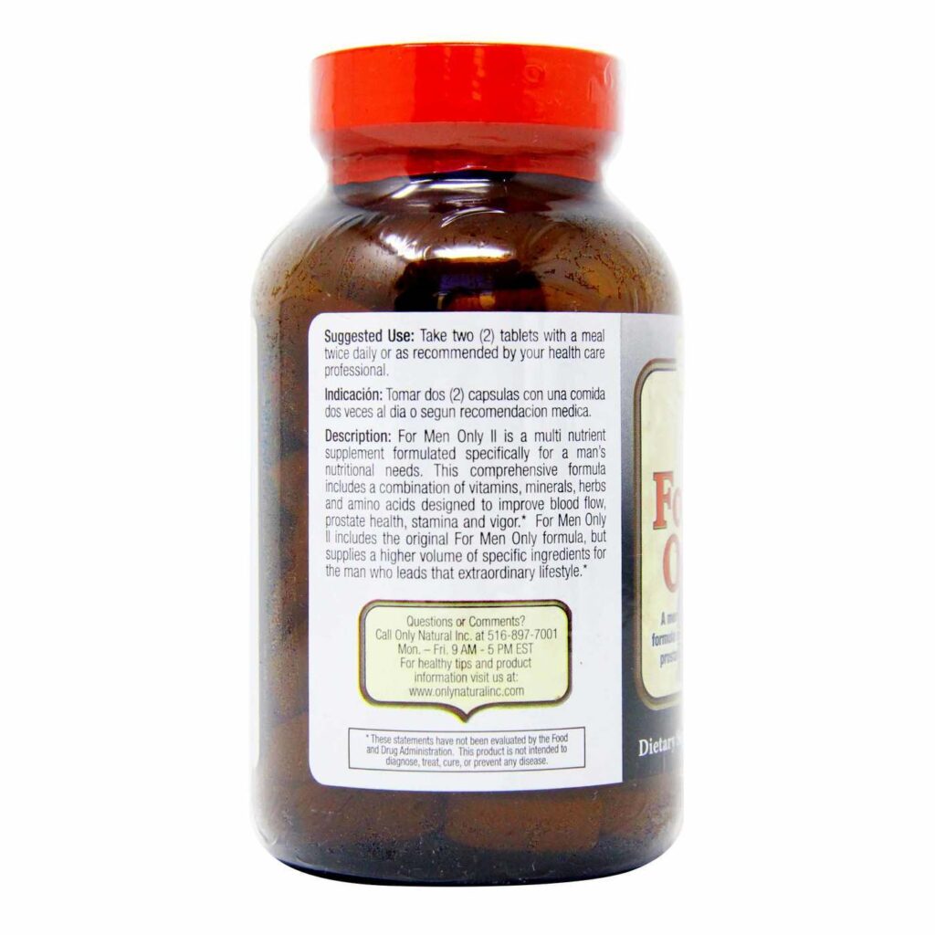 O Only Natural For Men Only II™ é uma fórmula ultra potente desenvolvida especificamente para a saúde e vitalidade masculina, contendo 90 tabletes para um uso prolongado e eficaz.