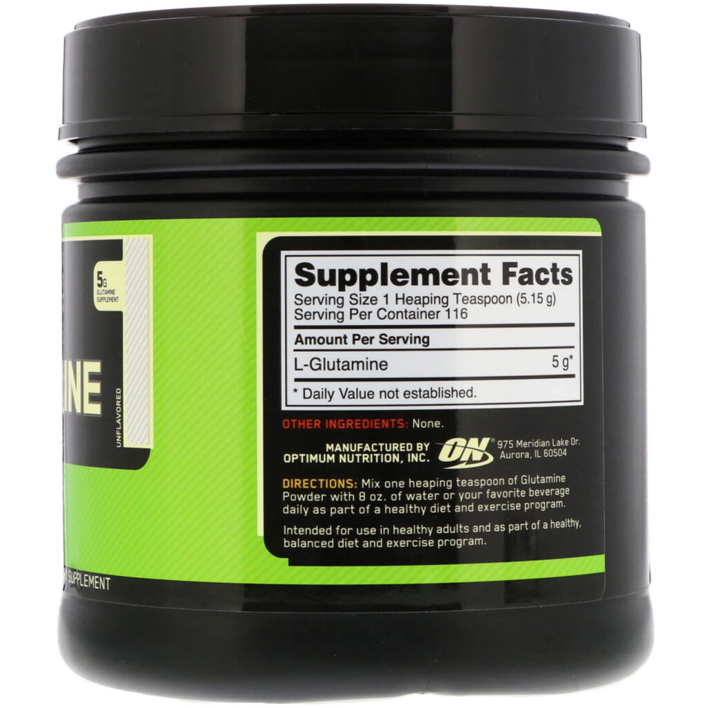 A glutamina é o aminoácido mais abundante no corpo e desempenha um papel importante no desenvolvimento de proteínas musculares. Durante períodos prolongados de exercício intenso, os níveis de glutamina podem ser reduzidos, o que pode limitar a síntese de proteínas. Nosso pó de glutamina é uma maneira simples de complementar sua dieta com esse aminoácido. Apenas uma colher de chá de pó de glutamina fornece mais glutamina do que 4 ovos jumbo, 4 oz. de carne magra, 3/4 de xícara de soja ou um peito de frango de 4 oz. Como não possui sabor e é instantâneo para facilitar a mistura, você pode adicionar o pó ao suco de frutas, shakes de proteínas ou à sua fórmula favorita de ganho de peso.