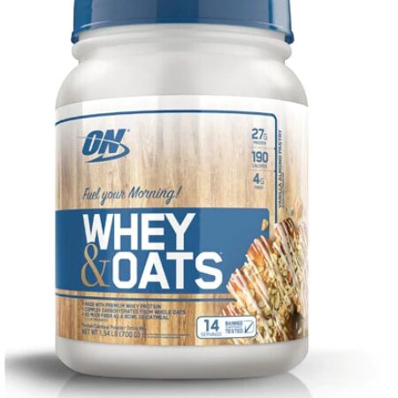 O Optimum Nutrition Whey & Oats™ Vanilla Almond Pastry foi meticulosamente desenvolvido para atender às necessidades de atletas e indivíduos ativos que buscam um suplemento versátil e eficaz. A combinação sinérgica de whey protein de alta qualidade e aveia integral proporciona um perfil completo de aminoácidos essenciais para a reparação e crescimento muscular, enquanto a aveia libera energia de forma gradual, mantendo você saciado e energizado por mais tempo. Este produto se destaca por: