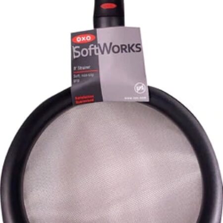 Peneira Grande OXO 20cm com Borda para Despejar e Alça Antiderrapante – 1 Unidade Essencial para sua Cozinha