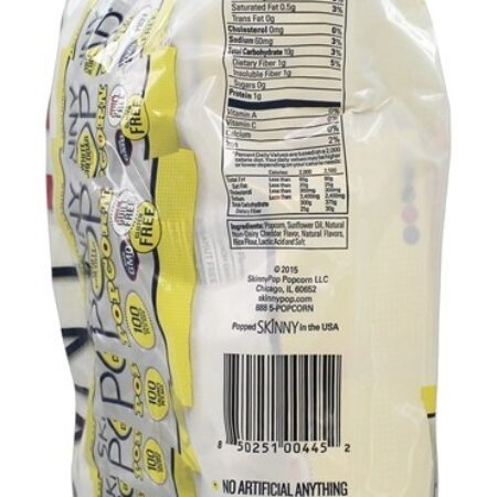 Skinny Pop Toda a Pipoca de Cheddar Branco Natural não contém nada artificial. Skinny Pop Toda a Pipoca de Cheddar Branco Natural oferece lanches sem culpa com sabor de cheddar branco sem laticínios.