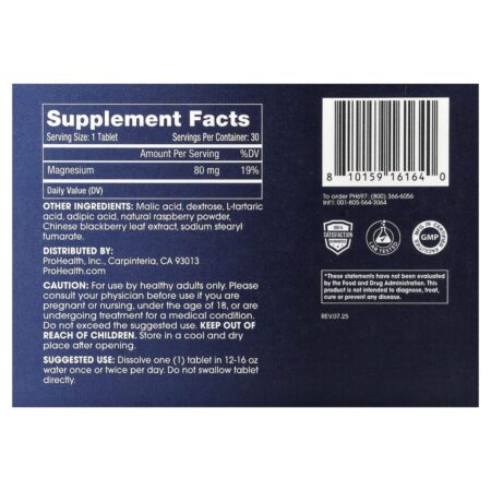 ProHealth Longevity Comprimidos de Água e Longevidade de Hidrogênio Molecular Framboesa Natural 30 Comprimidos Efervescentes (80 mg por Comprimido) – ProHealth Longevity Suplementos Minerais Magnésio.