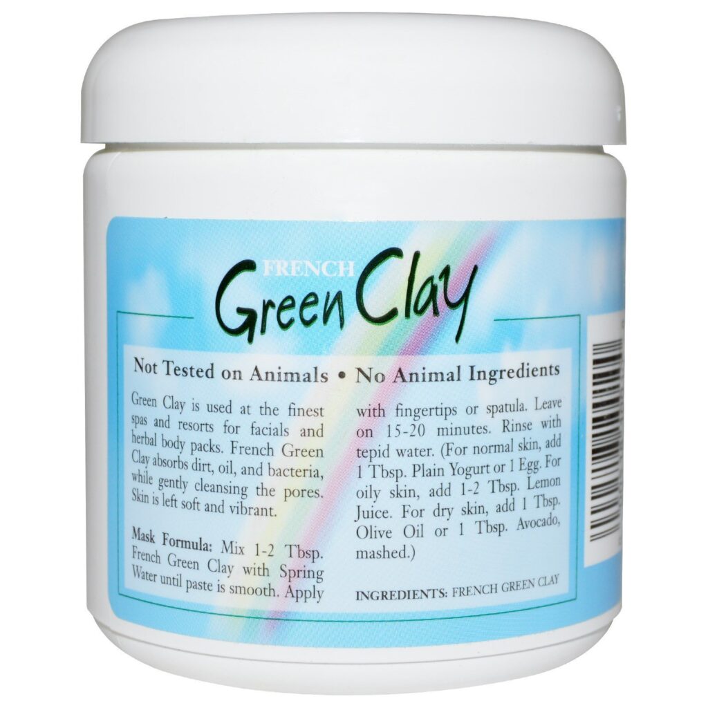 Fórmula da máscara: Misture 1 a 2 colheres de sopa de French Green Clay com água mineral até que a pasta fique macia. Aplique com as pontas dos dedos ou com uma espátula. Deixe na pele de 15 a 20 minutos. Lave com água morna. (Para pele normal, adicione 1 colher de sopa de yogurte ou 1 ovo. Para pele oleosa, adicione 1 ou 2 colheres de sopa de suco de limão. Para pele seca, adicione 1 colher de sopa de azeite ou 1 colher de sopa de abacate amassado).