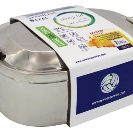 New Wave Enviro Products O Recipiente de Almoço em Aço Inoxidável Lixo é um produto durável e resistente – projetado para uso diário em qualquer lugar. Vá em frente e jogue um, dois, três na sua mochila – eles não abrem até você abri-los. Como todos os recipientes de comida de aço inoxidável de New Wave Enviro Products , a tampa da braçadeira é não-tóxica e não lixiviada: sem produtos químicos, sem toxinas, sem sabor.