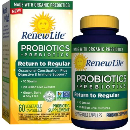 Renew Life Return to Regular Probióticos com Prebióticos – 60 Cápsulas – 20 Bilhões CFU