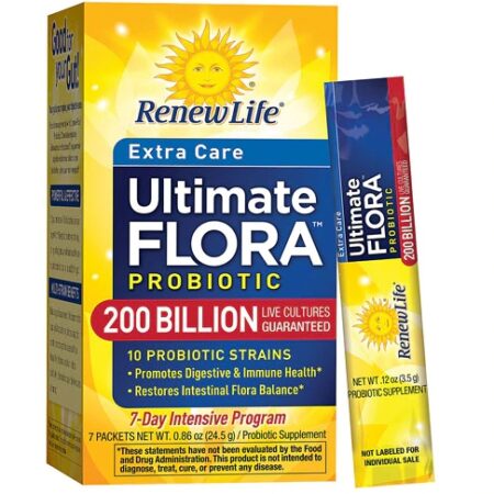 Renew Life Ultimate Flora Probiótico Extra Care: Potencialize Sua Saúde Intestinal com 200 Bilhões de UFC em 7 Pacotes Práticos