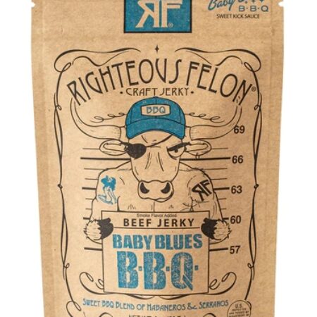 Jerky de Carne de Boi Righteous Felon Baby Blues BBQ – 57g: A Explosão de Sabor Perfeita para Seus Dias!