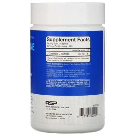 RSP Nutrition, L-Carnitina, 500 mg, 120 Cápsulas