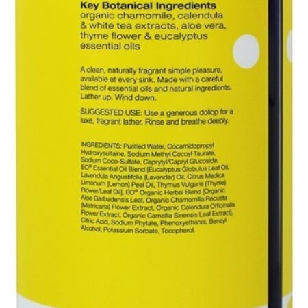 EO Products Mão Sabão Reabastecer Limão & Eucalipto é o ecológico responder para único usar plástico garrafas. O Limão Brilhante e o Eucalipto estimulante unem-se neste sabonete de mão edificante. Pure óleos essenciais são misturados com a EO Products assinatura de Mistura Herbal Orgânica de Extratos de Camomila, Calêndula, Aloe e Chá Branco em uma base de limpadores derivados de coco para um sabonete que cheira divina.