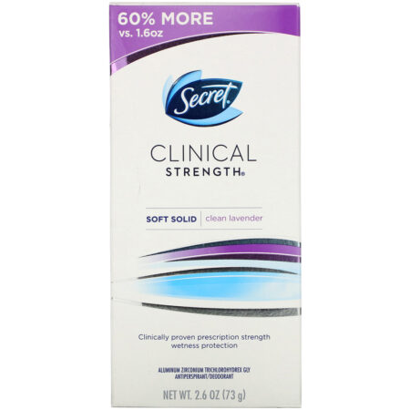 Secret, Clinical Strength Antiperspirant/Deodorant, Soft Solid, Clean Lavender, 2.6 oz (73 g)