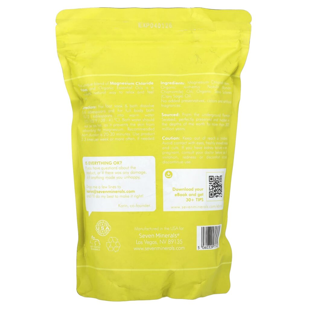 Seven Minerals Relaxamento Profundo Flocos de Banho de Magnésio Camomila romana e Sálvia 136 kg (3 lb) – Seven Minerals Suplementos Minerais Magnésio.