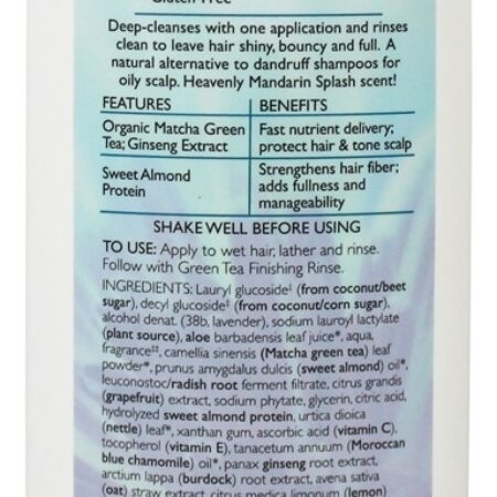 Aubrey Organics Clarificador de chá rápido de chá verde Mandarim Splash dê uma limpeza profunda com extrato de ginseng e chá verde Matcha orgânico e enxágue bem para deixar o cabelo brilhante, saltitante e cheio. É uma alternativa natural aos xampus caspa para o couro cabeludo oleoso. Ele também tem um Splash Mandarim celestial!