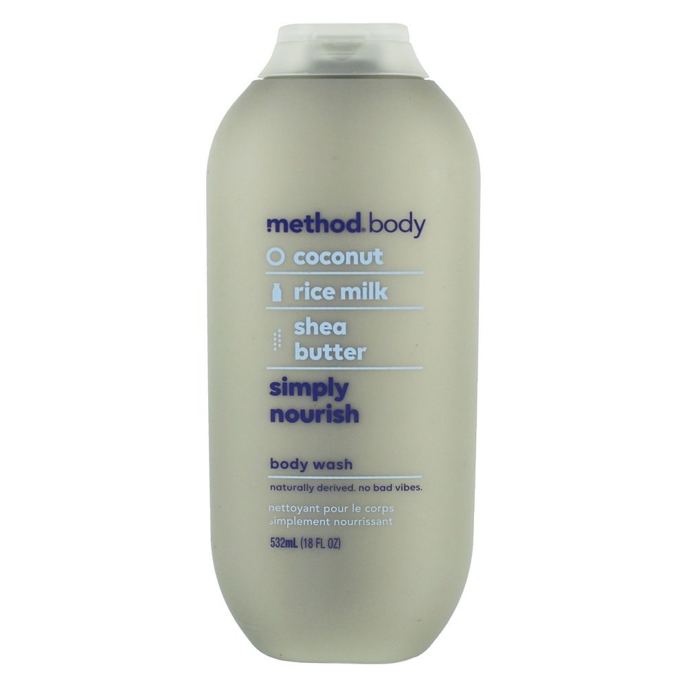 Método Simplesmente Nourish Corpo Lavar é infundido com coco, arroz leite e karité manteiga. Esta lavagem nutritiva do corpo é embalada com bondade para deixar a pele macia, suave + cheirando a conforto. Secura nunca é uma coisa boa.