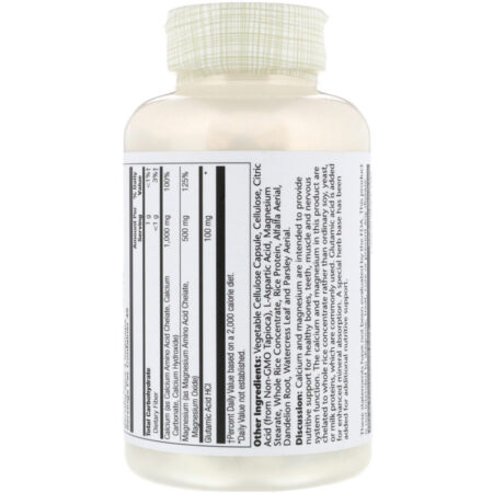 Discussão: o cálcio e o magnésio são destinados a fornecer suporte nutricional para ossos saudáveis, dentes, músculo e a função do sistema nervoso. O cálcio e o magnésio neste produto são quelatados para o concentrado de arroz integral ao invés de soja comum, levedura ou leite, proteínas que são comumente usados. Ácido glutâmico é adicionado para maior absorção mineral. Foi adicionada uma base de erva especial para suporte nutritivo adicional.