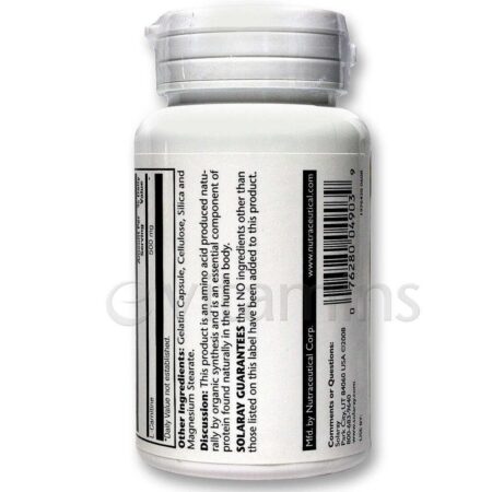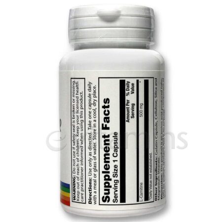 Cada cápsula do Solaray L-Carnitina contém 500 mg de L-Carnitina, garantindo uma dose concentrada para seus objetivos.