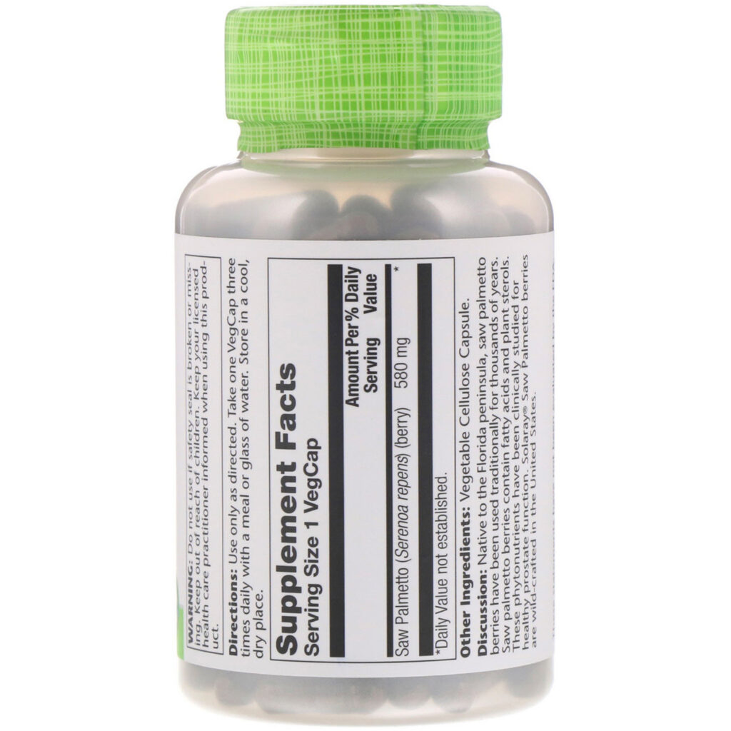 Discussion: Native to the Florida peninsula, saw palmetto berries have been used traditionally for thousands of years. Saw palmetto berries contain fatty acids and plant sterols. These phytonutrients have been clinically studied for healthy prostate function. Solaray Saw Palmetto berries are wild-crafted in the United States.