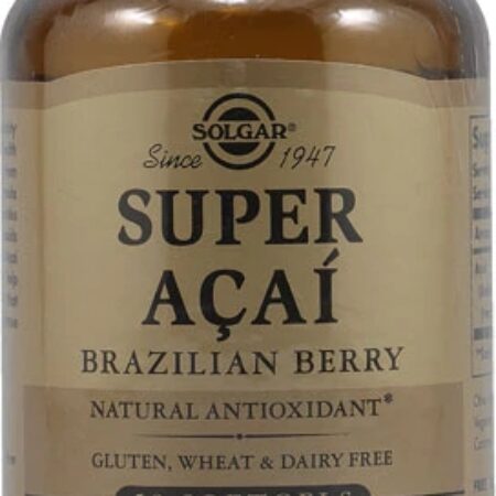 Solgar Super Açaí Brazilian Berry é um suplemento alimentar em cápsulas softgel que oferece os poderosos antioxidantes do açaí. Seus principais benefícios incluem o combate aos radicais livres, o fortalecimento do sistema imunológico e a promoção da saúde cardiovascular e da pele.