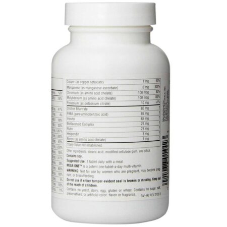 O Source Naturals Mega-One é um multivitamínico e mineral completo, formulado para fornecer um amplo espectro de nutrientes essenciais que apoiam a saúde geral, a energia e o bem-estar diário.