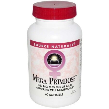 Source Naturals Mega Primrose é um suplemento alimentar em cápsulas de gel que contém óleo de prímula, uma fonte rica em Ácido Gama-Linolênico (GLA), conhecido por seus benefícios para a saúde feminina e da pele.