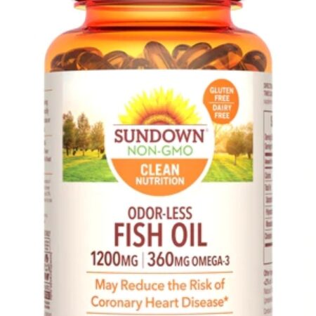 Sundown Naturals Ômega-3 de Peixe Sem Odor – 1200mg – 60 Cápsulas Gelatinosas Revestidas