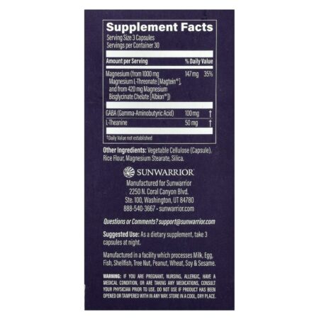 Sunwarrior MagZen GABA e L-Theanine 90 Cápsulas Veganas – Sunwarrior Suplementos Minerais Magnésio.